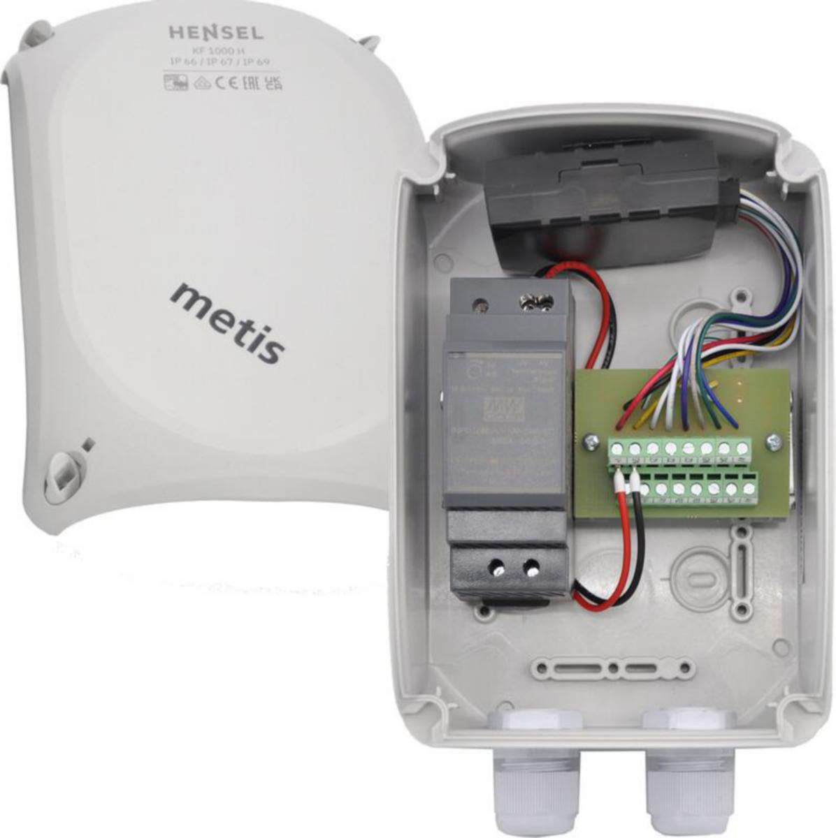 Metis 433 on tiedonsiirtolaite, joka on rakennettu Henselin laadukkaaseen ja kestävään koteloon. Kotelossa on tilaa kaapeloinnille ja pohjassa valmiit aihiot M20-läpivienneille.Laitteen voi kytkeä suoraan 230 V jännitteeseen, ja siinä on valmiina ruuviliittimiin kytkettävät analogi- sekä digitulot sekä OneWire. Mukana toimitetaan käyttöohje, jonka avulla anturit ja muut laitteet on helppo liittää.Tiedot voidaan siirtää tekstiviestinä asiakkaan matkapuhelimeen (esikonfiguroitu, aktivoi puhelinnumerot käyttöohjeen avulla) tai Elisan pilvipalvelun (lisäpalvelu) kautta monella eri tavalla.Metiksessä on oma pieni akku, joka on vaihdettavissa isompaan tai tarvittaessa esim. aurinkosähköön. Laitteessa on myös liikeanturi.Testattuja sensoreita löytyy monenlaisiin tarpeisiin: