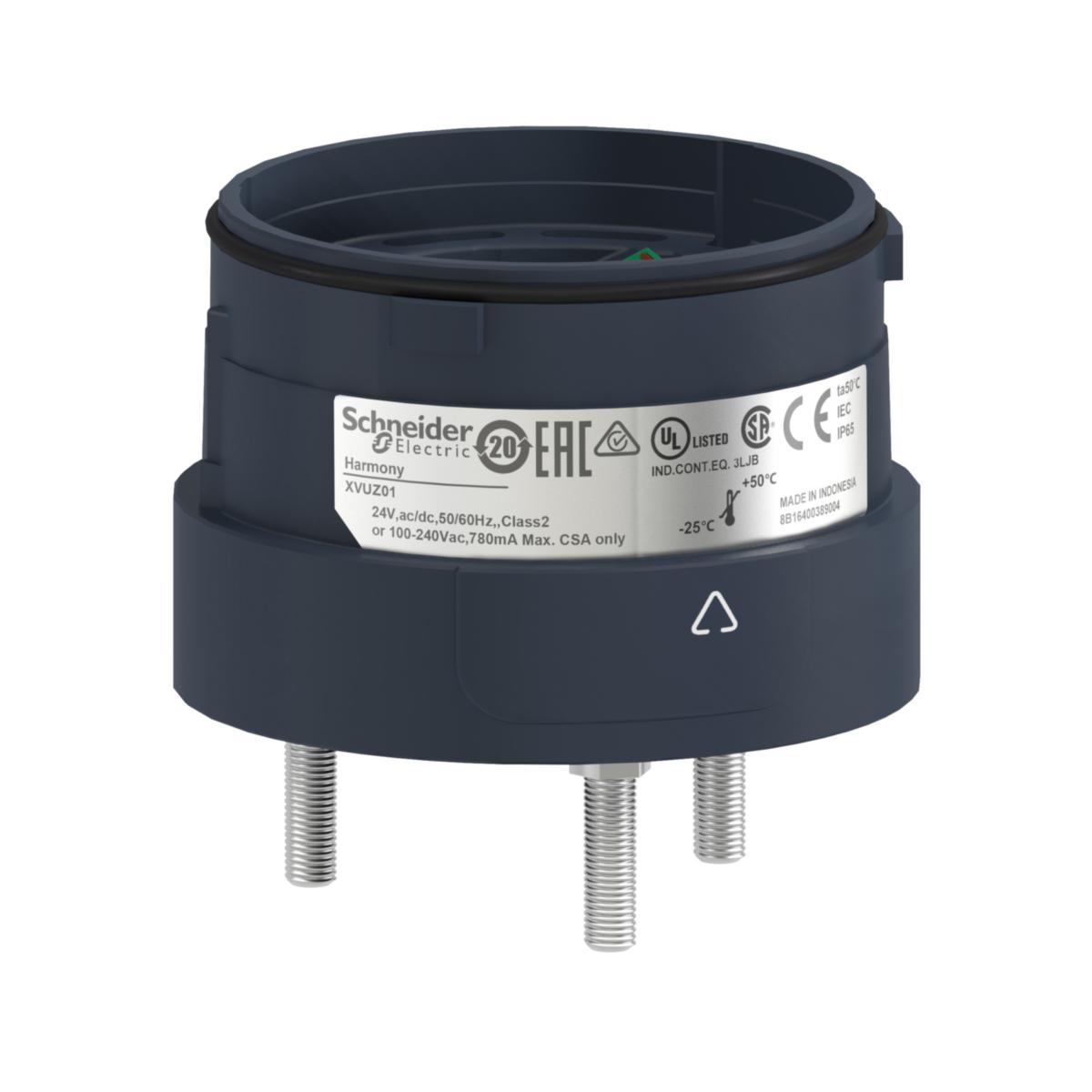 Harmony XVUInnovatiivinen Harmony XVU valotornisarja (Ø 60 mm ) tarjoaa monipuolisen valikoiman valo - ja äänimoduuleja. Lisäksi kiinnitykseen löytyy paljon vaihtoehtoja seinään tai tasoon asennettavaksi. Modernia muotoilua ja erittäin kirkkaat valomoduulit.Täyttää IEC, UL ja CSA standardit sekä CE vaatimuksetIP65 valomoduulit ja IP54 äänimoduuleilleSuper-kirkas LED, jossa 360° näkyvyys6 väriä ja 4 eri tilaa valolle: Kiinteä, välähtävä, vilkkuva ja pyörivä4 erilaista asennustapaa: moniasentojalusta, seinä, taso tai suoraan kiinnitysYhteiset valomoduulit AC ja DC syötölleÄäni ja puheääni moduulitErittäin hyvä havaittavuus koneen tilastaHelposti sovelukseen muokattavissa (ääni ja näkyvyys)Yksinkertainen asentaa, helppo huollettavuus ja mahdollista liittää suoraan PLC ohjaukseenVaivaton tuotevalinta ja tilaus: 60% vähemmän tuotereferenssejä kuin vastaavilla valotorneilla mutta samat monipuoliset toiminnotModerni ulkonäköSovellukset:Materiaalin työstöMateriaalin käsittelyPakkauskoneetElektroniikkateollisuusAutoteollisuus