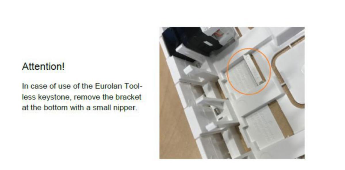 Huomioithan että kun käytetään suojattua Eurolan liitintä tulee rasian pohjassa olevat muoviklipsit poistaa.