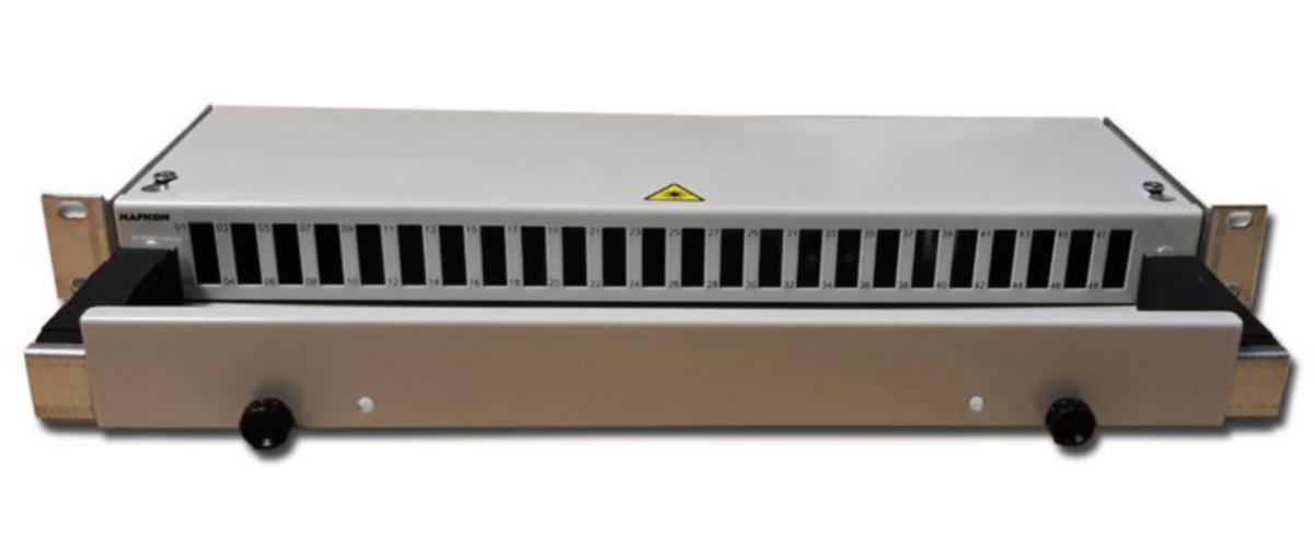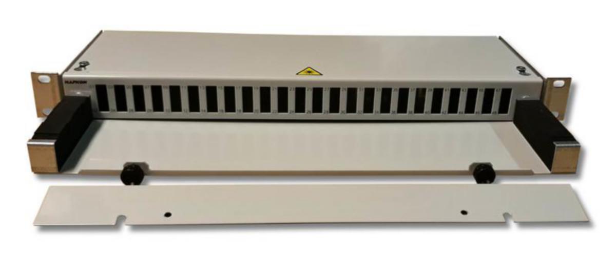Paneeli 19 2-48xSC19" paneeli, johon voi asentaa 24 SC duplex adapteria. Sivuilla vedonpoisto kytkentäkaapeleille ja edessä merkintälista, joka on kiinnitettävissä törmäyssuojaan. Korkeus 1U. Kaapelin voi tuoda takaa sekä vasemmalta, että oikealta.