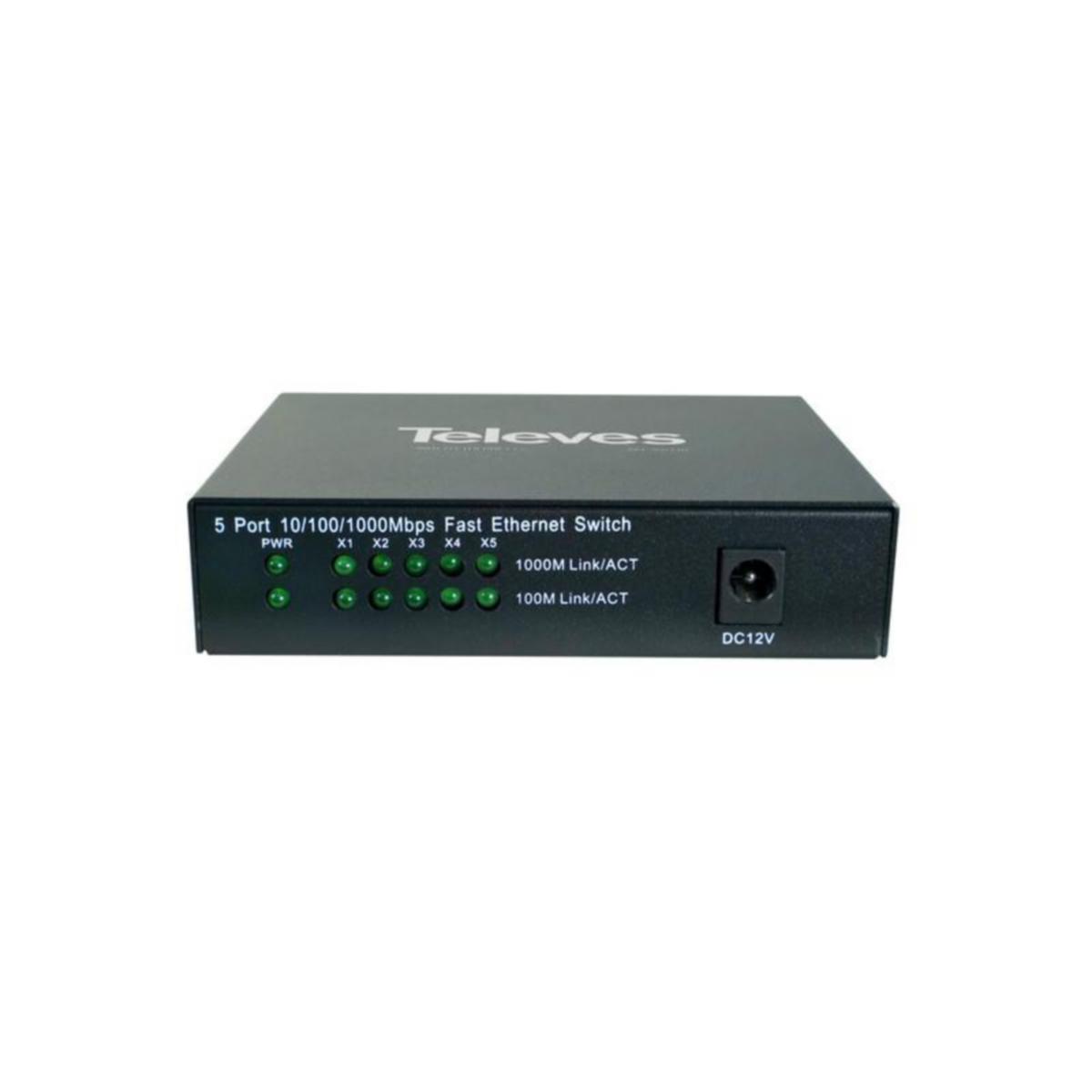 Televesin ei-hallittava 5-porttinen Gigabitin Layer 2 -kytkin. Tämän Plug&Play -laitteen käyttö on helppoa, eikä sitä tarvitse ohjelmoida. Se sopii monenlaisiin sovelluksiin ja on suunniteltu erityisesti pieniin verkkoihin, joissa ei vaadita useita portteja.Yhteensopiva IEEE 802.3 (10Base-T), IEEE 802.3u (100Base-TX), IEEE 802.3ab (1000Base-T) ja IEEE 802.3x (Flow Control) -standardien kanssa