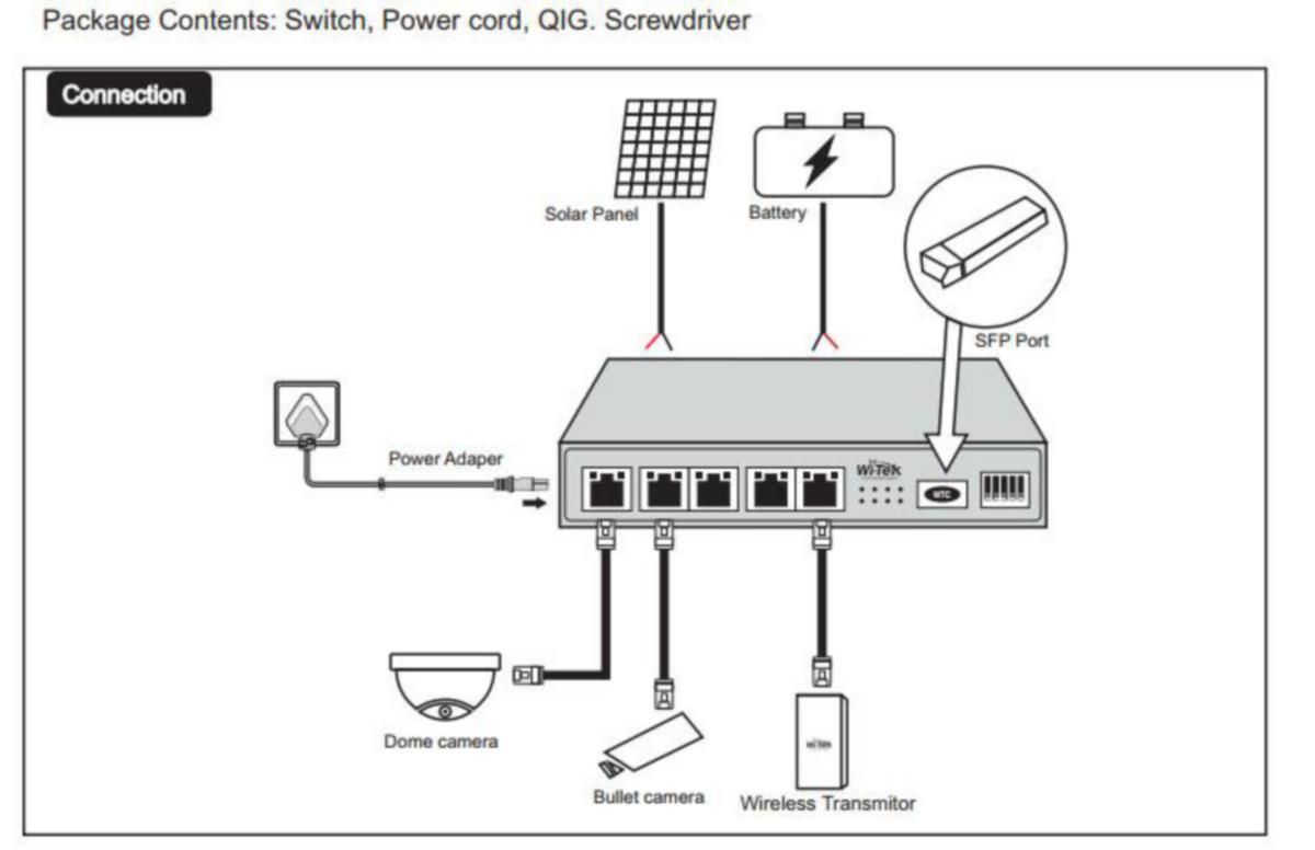 ETHERNET KYTKIN WI-TEK 5XGE+1SFP 230AC/18-36DC POE