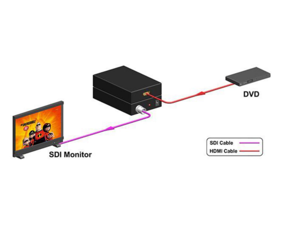 KanexPro HDMI-SDI-muunnin on suunniteltu muuntamaan korkean resoluution HDMI-lähteitä SDI-näyttöön (HD-kamerat, GoPro-kamerat, HDMI-pohjaiset PC:t). Tämä kompakti laite sopii helposti niin SDI-näytön taakse, telineen takaosaan kuin suoraan kameratelineeseenkin.Soveltuu seurantaan ja tallentamiseen sovelluksissa tai live-tapahtumissa.Ominaisuudet:Muunna HDMI-PC-signaali tai HD-kamera HD-SDI-signaaliksiVerkkolaajennin monitoreilleIntegroitu audioSynkronoidut audio/video ja äänetHDMI-äänentoistoon kuluu jopa kahdeksan kanavaa SDI-ulostuloonSovita monitorin taakse, telineen takaosaan tai suoraan telineeseenTukee signaalin tahdistustaSDI kantama jopa 300 metriä