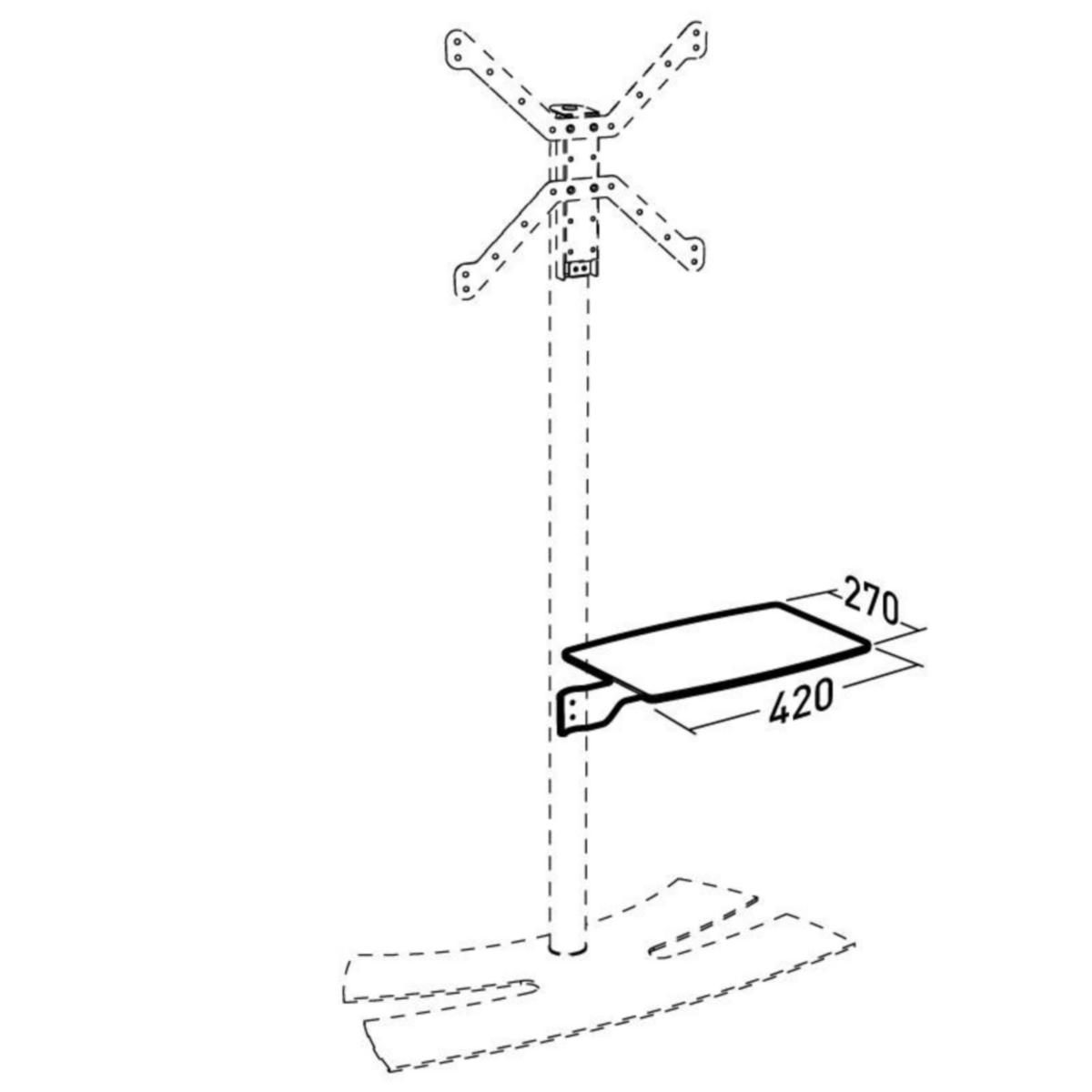Hylly LUX-UP televisiotelineisiin Maksimikuorma: 5kgMateriaali: Teräs+karkaistu lasi Mitat: 420x270mm
