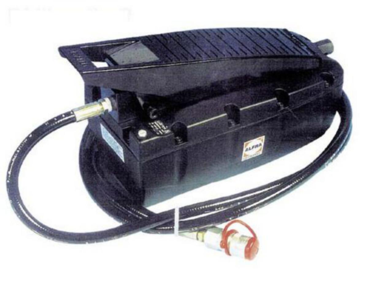 Paineilmahydraulinen pumppu LHP 700 (700 bar). Taloudellinen vaihtoehto paikkoihin, joissa paineilma (min. 2.8 bar) saatavilla. Yksitoimisille hydraulisylintereille aukotukseen, kaapelileikkaukseen, puristamiseen tai muuhun samankaltaiseen käyttöön. Sopii myös Alfra Press 250:n ja 400:n käyttöön.
