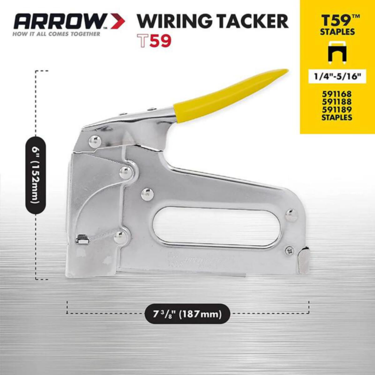 Arrow-T59 on ammattilaisten valinta data- ja tietoliikennekaapeleiden asentamiseen. Huolimatta siitä, asennatko Cat 5-, RG-59- tai RG-6-kaapeleita, tämä työkalu kiinnittää johdot nopeasti ja varmasti. Uurrettu lankaohjain seuraa kaapelia pitkin, mikä nopeuttaa työtä ja estää vaurioita. Siinä on myös kromattu teräsrunko, karkaistut teräsosat ja jämäkkä puristuskahva.Sinkilänaulain Arrow T59 6-8mm kaapeleille (RG59/6)