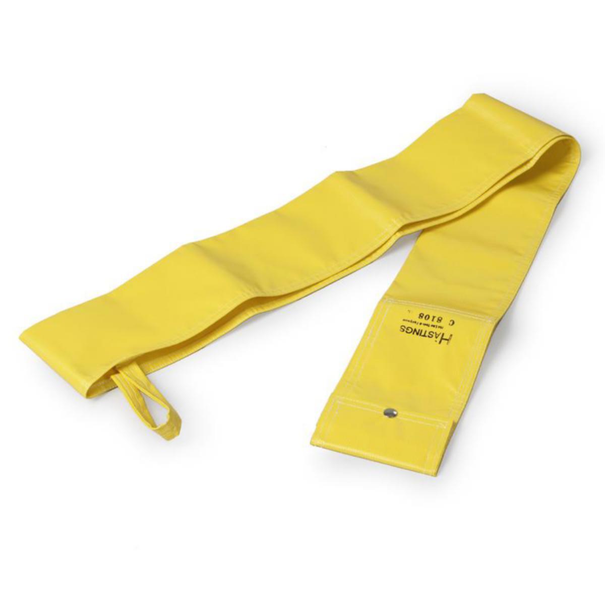 Vettä hylkivä keltainen vinyylipussi kantokahvalla. Kiinnikkeet vahvistettu nylonilla. Aukaistaan päässä olevasta pikalukitus läpästä.