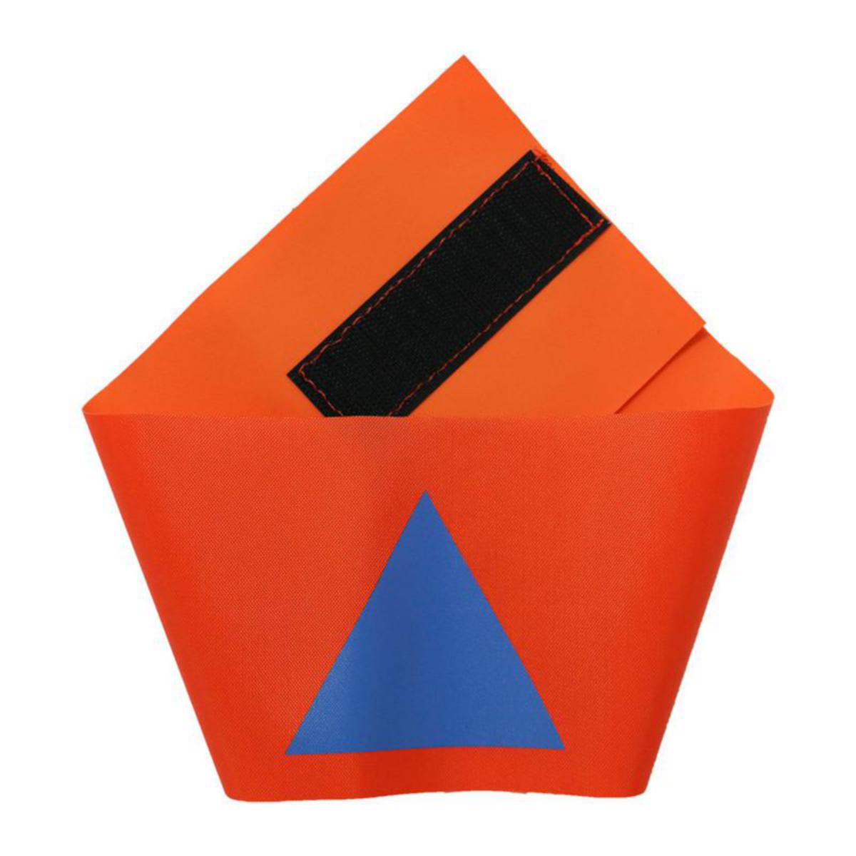 Käsivarsinauha väestönsuojeluhenkilöstön käyttöön. Tarranauhakiinnitys, sininen kolmiopainatus.