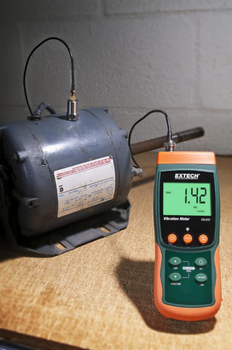 Extech SDL800 Värähtelymittari/dataloggeri mittaa ja tallentaa värähtelyä ulkoisen anturin avulla. SDL800 tarjoaa laajan mittausalueen 10Hz - 1kHz tarkkuuden ollessa ±(5% + 2 lukua). Dataloggeri tallentaa mitatut arvot SD-muistikortille Excel luettavassa formaatissa, jotka on helppo siirtää PC:lle.Ominaisuudet:Ulkoinen värähtelyanturi magneettisella kärjellä sekä 1,2m kaapelillaLaaja mittausalue: 10hZ - 1kHzTarkkuus ±(5% + 2 lukua)RMS, huippuarvon ja maksimilukeman näytölläpitoSäädettävä näytteenottotiheysManuaalinen 99 lukeman tallennus tai jatkuva dataloggausSuuri taustavalaistu LCD näyttöTallentaa arvot Excel luettavassa formaatissa, jotka on helppo siirtää PC:lleMinimi/maksimiarvojen tallennusNäytönpitoAutomaattinen virrankatkaisuSisältää: 6 kpl AA paristo, SD-muistikortti, suojakotelo, ulkoinen anturi