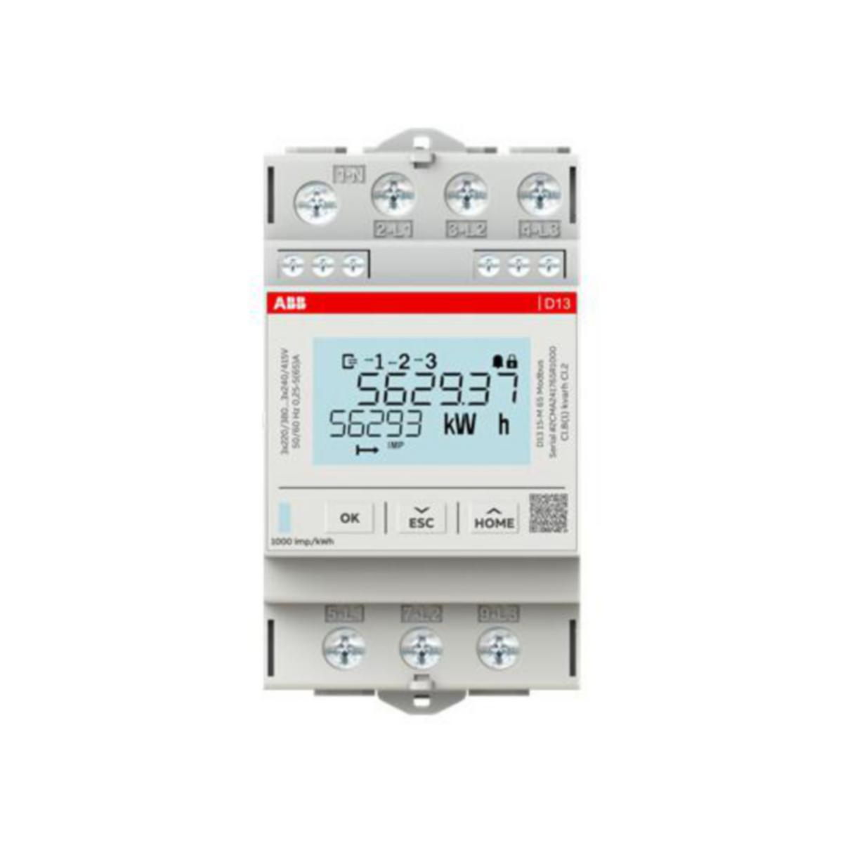 Sähkön kulutusmittari 3-vaiheinen, 65 A, 400 VAC, suorakytketty, tarkkuusluokka B (lk.1), MID-hyväksytty, kaksisuuntainen mittaus. Loisenergianmittaus, tarkkuusluokka 2. 4-tariffimittaus. 1-tulo ja 1-lähtö, max 40 VDC (pulssi-/hälytyslähtö). Muut sähkösuureet: tehot, jännite, virta, taajuus, tehokerroin ja cosphi. 3 DIN moduulia. Käyttölämpötila -40…+70 °C. Modbus (RS485).