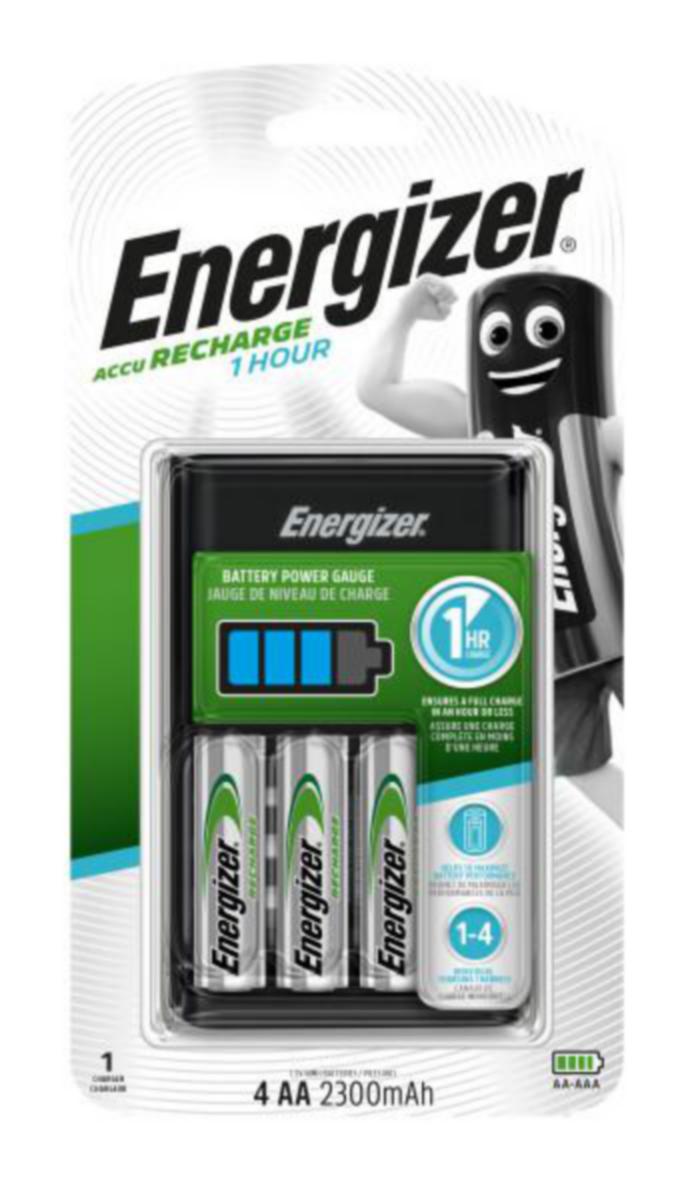 Energizer Recharge 1-Hour battery charger for NiMH Rechargeable AA and AAA Batteries – 4 AA batteries included
