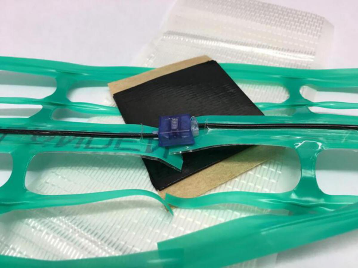 Verkkoliitin optisen varoituverkon etsintälangan liittämiseen. Varoitusverkko on aina liitettävä tasaiseksi, jotta teippi tarttuu itseensä verkon läpi. Mukana tuleva liitin on kosteudenkestävä liitin yhden langan liittämiseen.