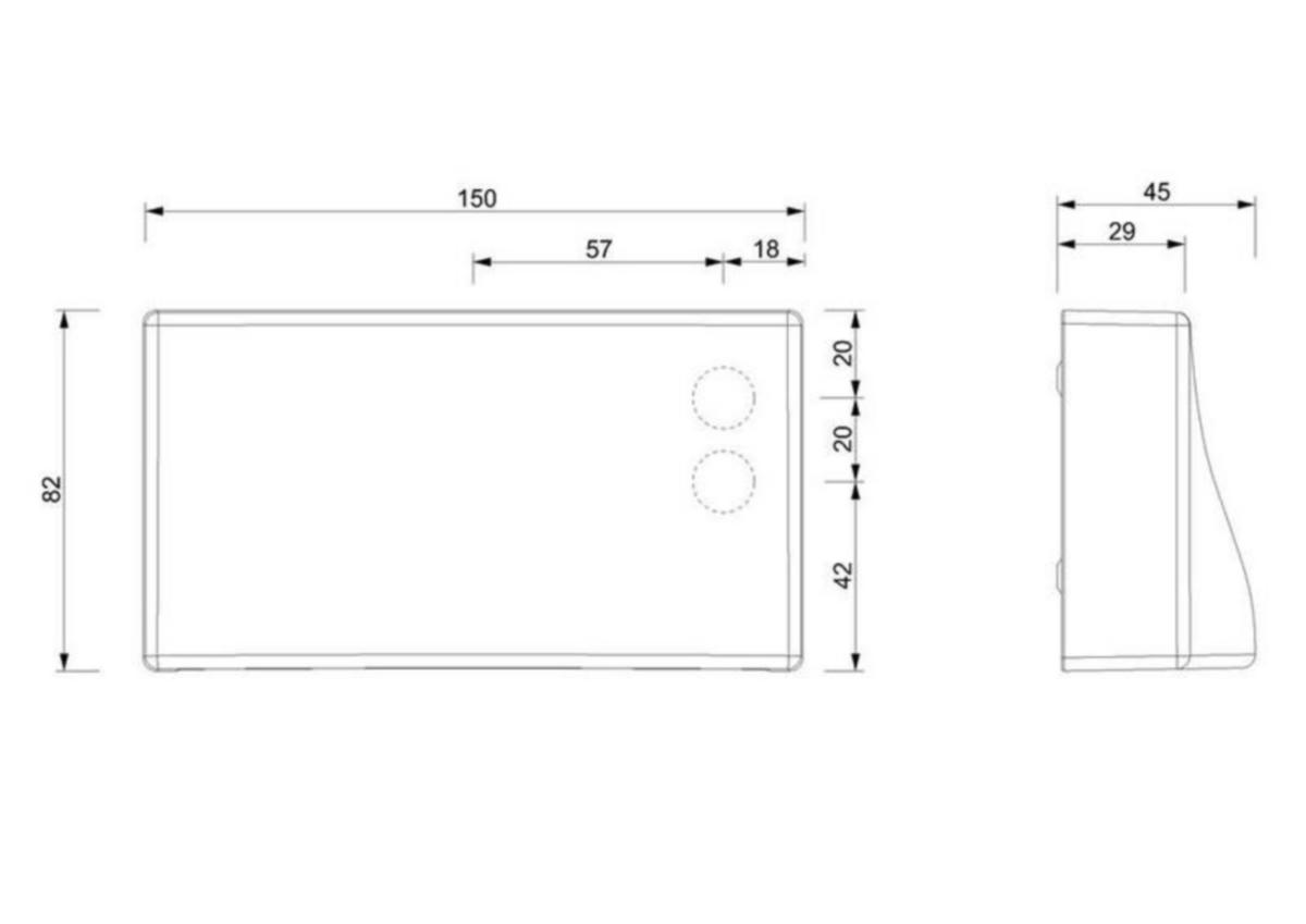 - Valaisimen mitat (mm): 150 X 82 X 29/45