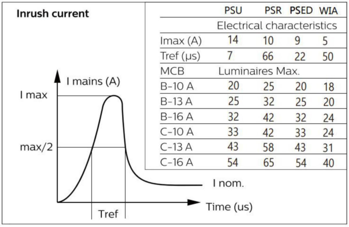 - Enimmäismäärä valaisimia, johdonsuojakatkaisija C16: 54