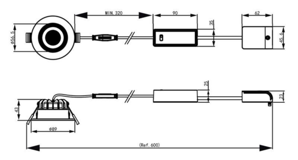 Valaisimen korkeus: 43 mm, soveltuu ahtaisiin alakattoihin