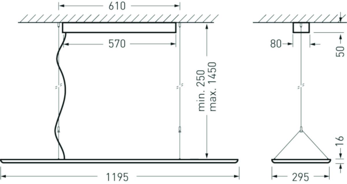 - Ripustuksen pituus: 1450 mm
