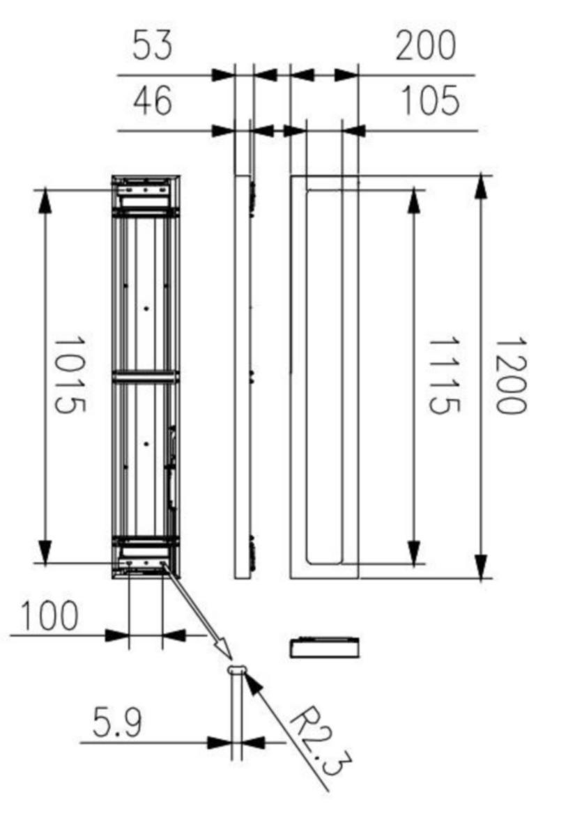 - Mitat (korkeus x leveys x syvyys): 53 x 200 x 1 200 mm