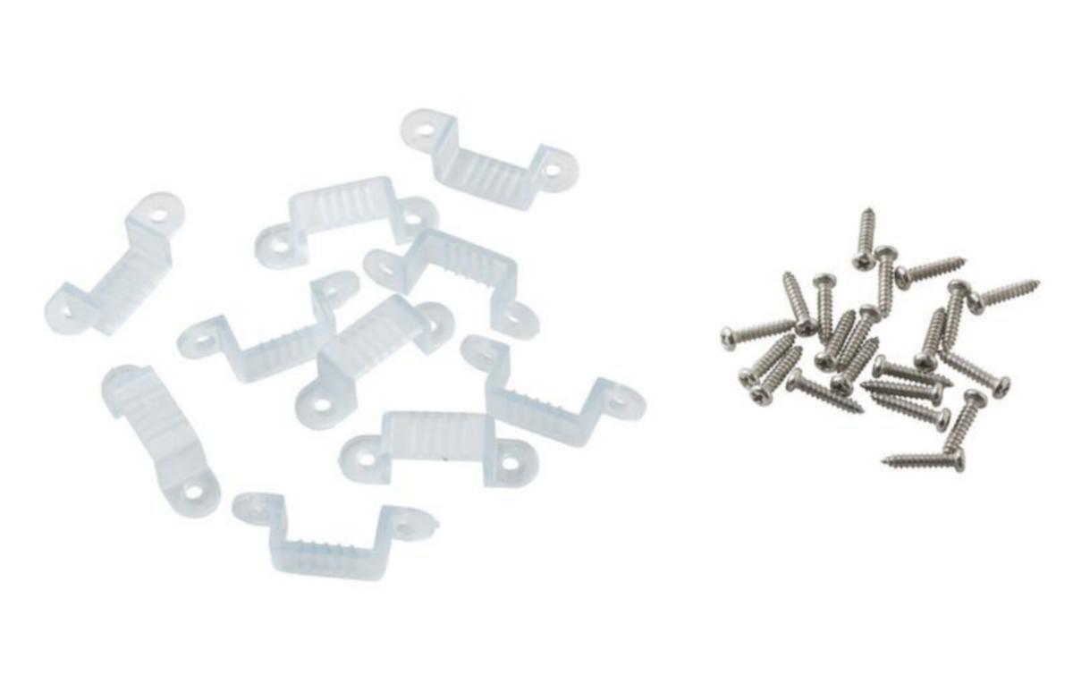 Rigel kiinnike 10kpl/pussiKiinnikepussi, sisältäen 10kpl:tta kiinnikkeitä Rigel-nauhan kiinnittämiseen.