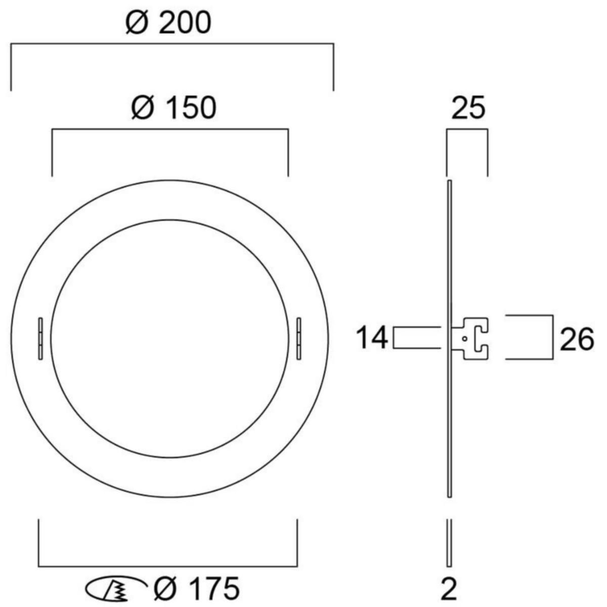 - Valaisimet, joiden upotusreikäkoko 150 mm: