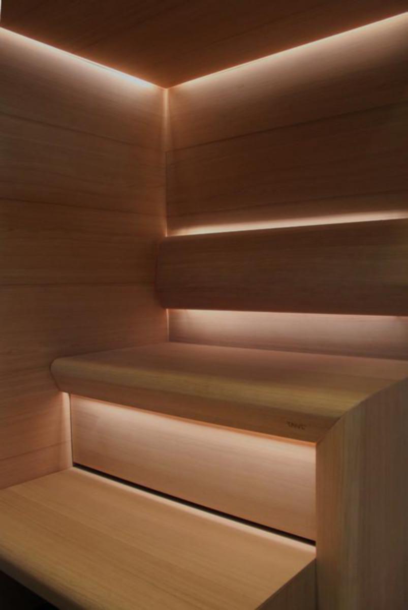 Sauna Linear Lasi on kaluste, joka voidaan asentaa saunan kattoon. Kaluste valaistaan lasikuiduilla molemmista päistä. - Lasinen optinen tanko ø 8 mm- Pituus 1680 mm, voidaan lyhentää- Kuidut 2 x S-Flex 6 M8
