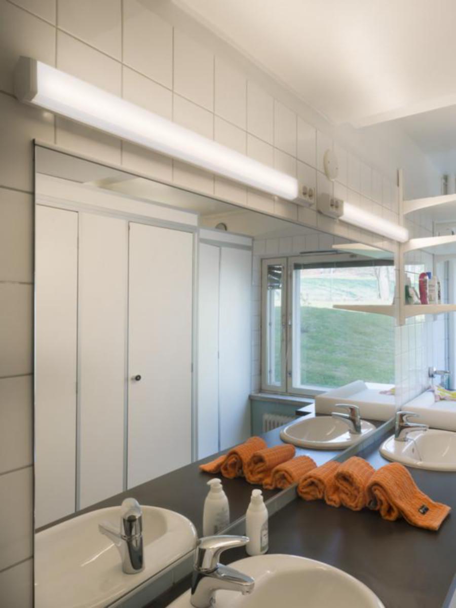 Pinta-asennus, läpijohdotettava ja ketjutettava 4 x 2,5 mm2 (pistorasialliset valaisimet) tai 3 x 2,5 mm2 (pistorasiattomat valaisimet).