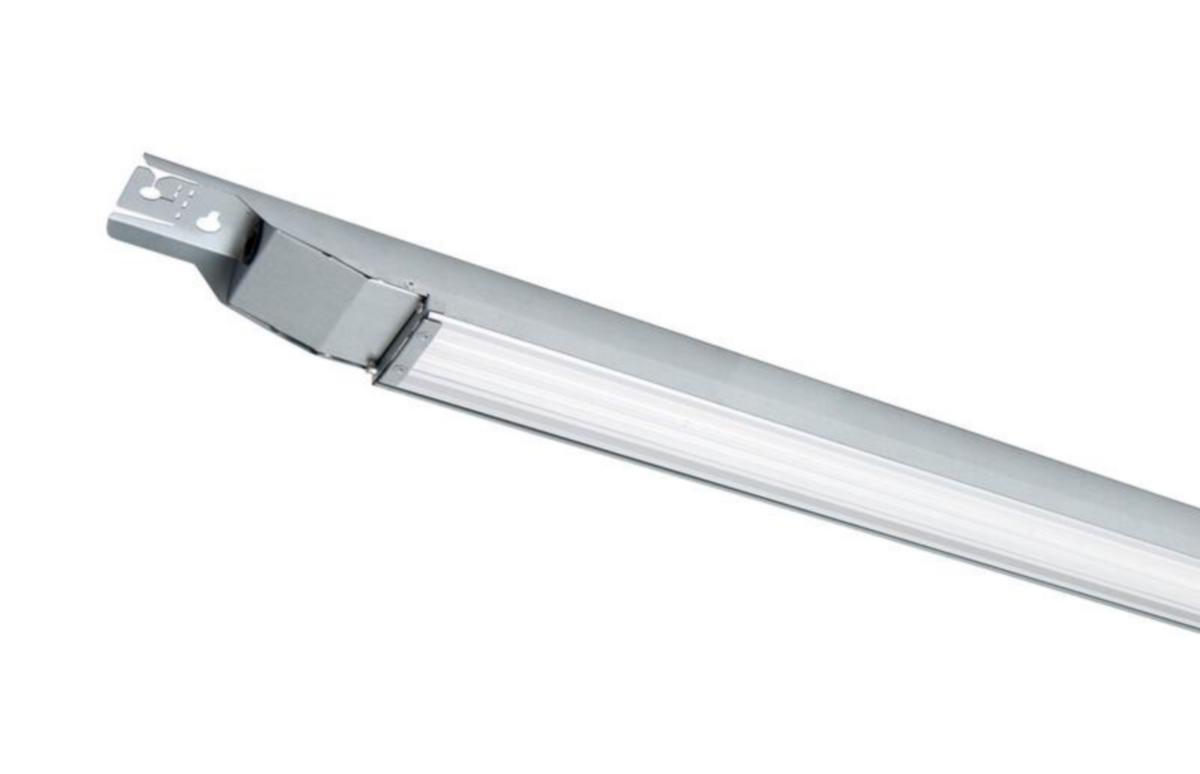 DAS = Kaksoisasymmetrinen (hyllyoptiikka), ACMP = Akryyli mikroprisma, PCO = Polykarbonaatti opaali Lisätarvikkeina matalaluminanssiritilät 4338576 (1250 mm) ja 4338577 (1550 mm), pallosuojaverkot (4338574 (1250 mm) ja 4338575 (1550 mm) ja yleiskiskokiinnike 4310530.