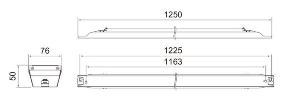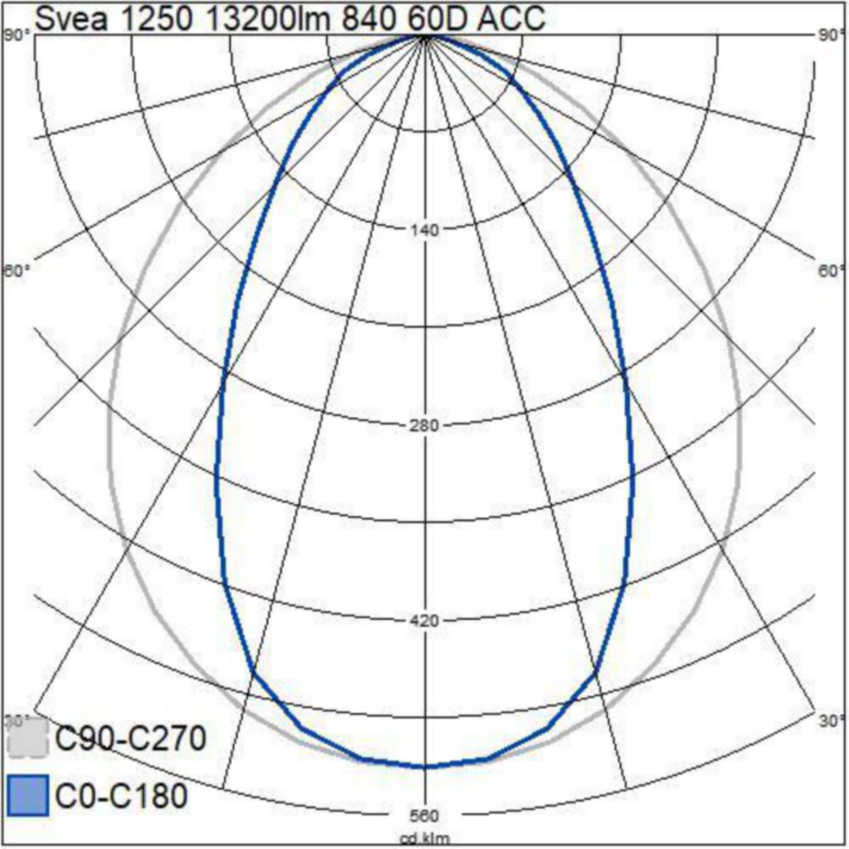 1250 mm 40–78 W:30D, 60D, 90D: 7000–13 000 lm. DAS: 7200–13 400 lm. ACMP, PCO: 6500–12 000 lm. 1550 mm 48–97 W: 30D, 60D, 90D: 8400–16 000 lm. DAS: 8600–16 500 lm. ACMP, PCO: 7900–14 700 lm.