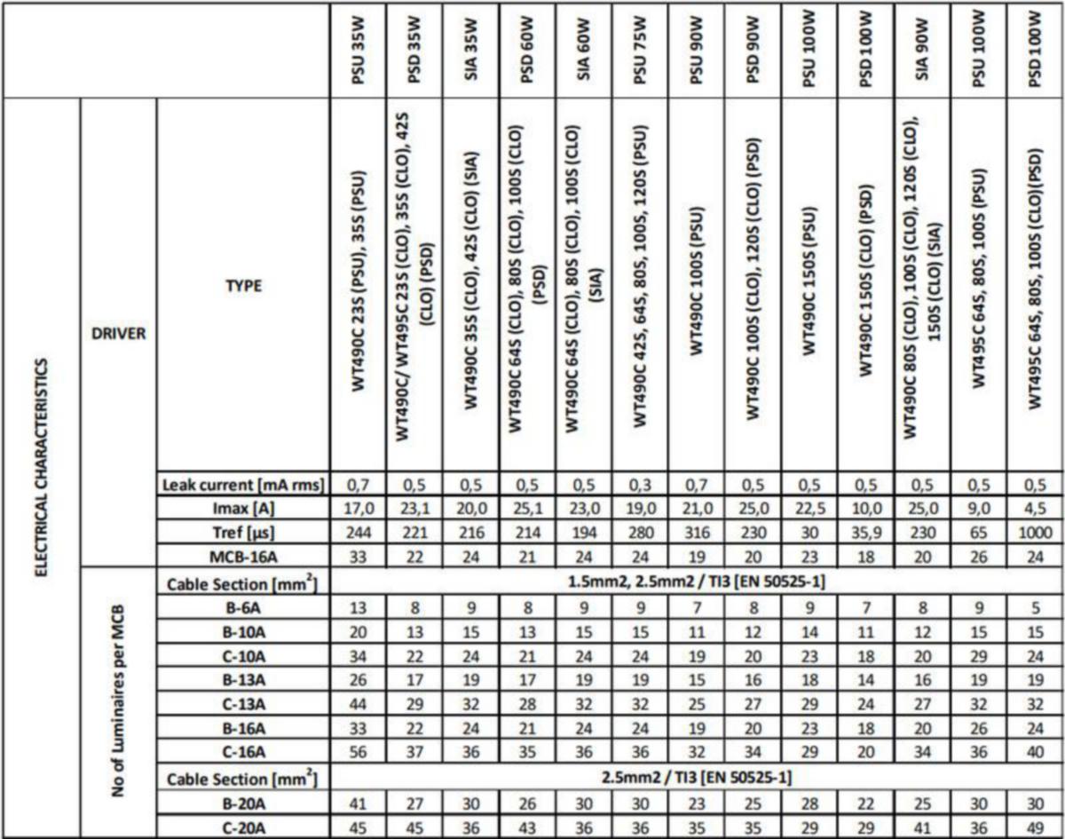 - Enimmäismäärä valaisimia, johdonsuojakatkaisija C16: 40