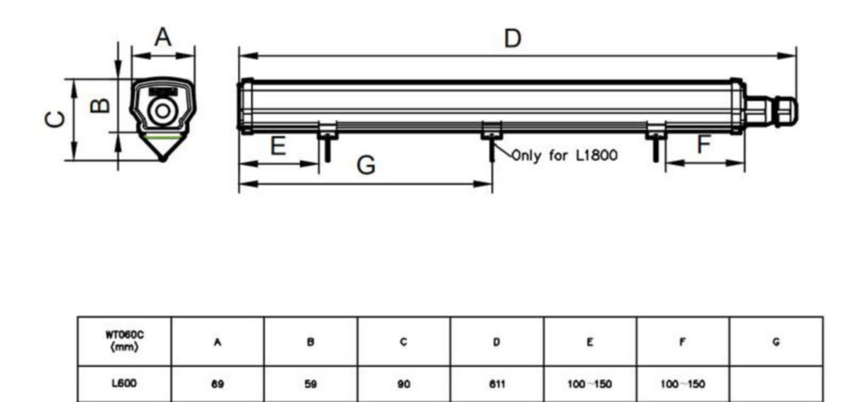 - Valaisimen pituus: 600 mm