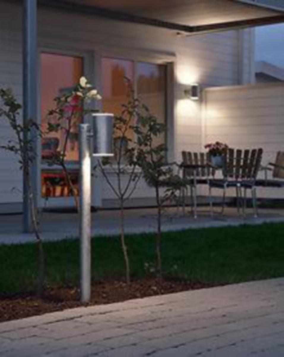 ULL Pollari, galvanoitu teräs, korkeus 95,5 cm, kirkas polykarbonaatti, IP54, vaihdettava LED 2x8W, himmennettävä, 3000K Yksinkertaisen tyylikäs valaisin, tuoteperheessä kaksi seinävalaisinta sekä pollari.