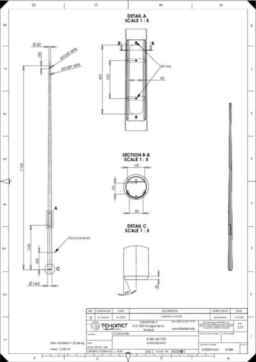 Kartiopylväsrunko Tehomet