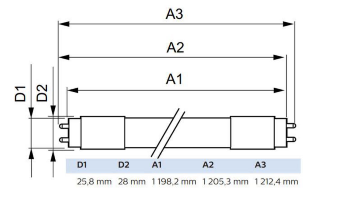 - Lampun muoto: putki, kaksipäätyinen