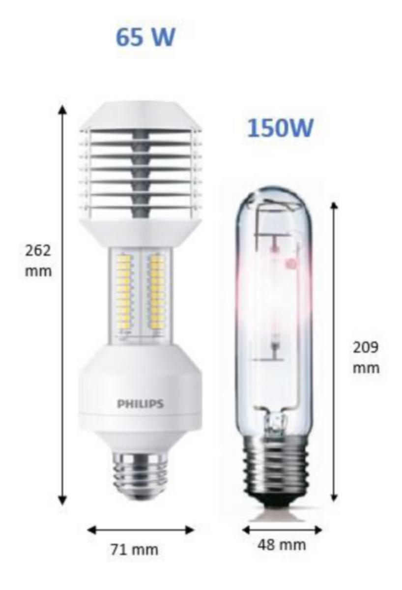 Korvaa perinteisen 150 W suurpainenatriumlampun