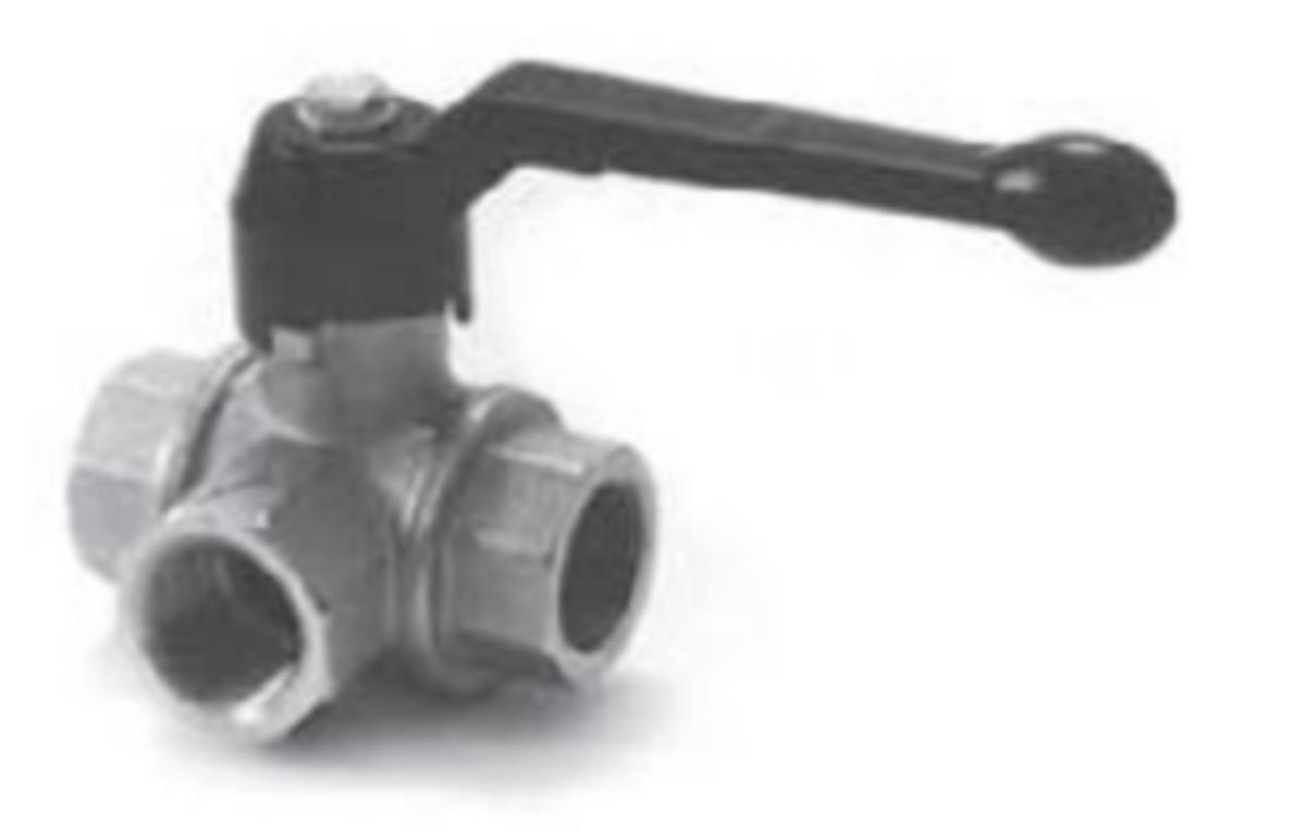 Messinkiä (niklattu), pallo kovakromattu. PTFE-tiiviste, kahva alumiinia. Työpaine 10bar. Pallo L-porauksella.