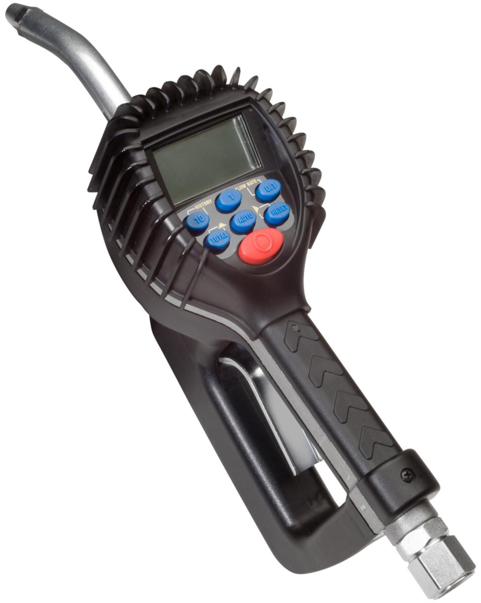 Ennakkoaseteltava. Painealue 0,38 - 70 bar. Mittatarkkuus ±0,5 %. Kerta- ja kokonaismäärälaskin. Kalibroitavissa eri öljylaaduille. Nestekidenäyttö. Virtaus 1 - 30 l/min. Käyttöalue -20 - +40°C. Liitäntä R 1/2" sk. Automaattinen suutin. Paristot 4 x AAA. Paino 1,9 kg.