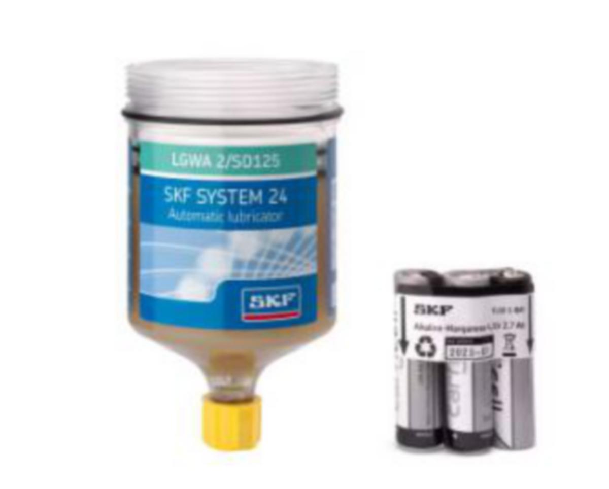 Tämä sarja on täytetty SKF LGWA 2 -rasvalla laajalle lämpötila-alueelle ja äärimmäisille paineille, suositellaan sähkömoottoreille, kuljettimille, puhaltimille ja pumpuille. SKF SYSTEM 24 -voitelulaitteiden täyttösarja on täytetty rasvalla/öljyllä ja niitä voidaan käyttää kaikkien TLSD-voitelulaitteiden kanssa. Öljyntäyttösarjan käyttöä varten tarvitset tukilevyn integroidulla paluuventtiilillä, joka on tilattava erikseen.