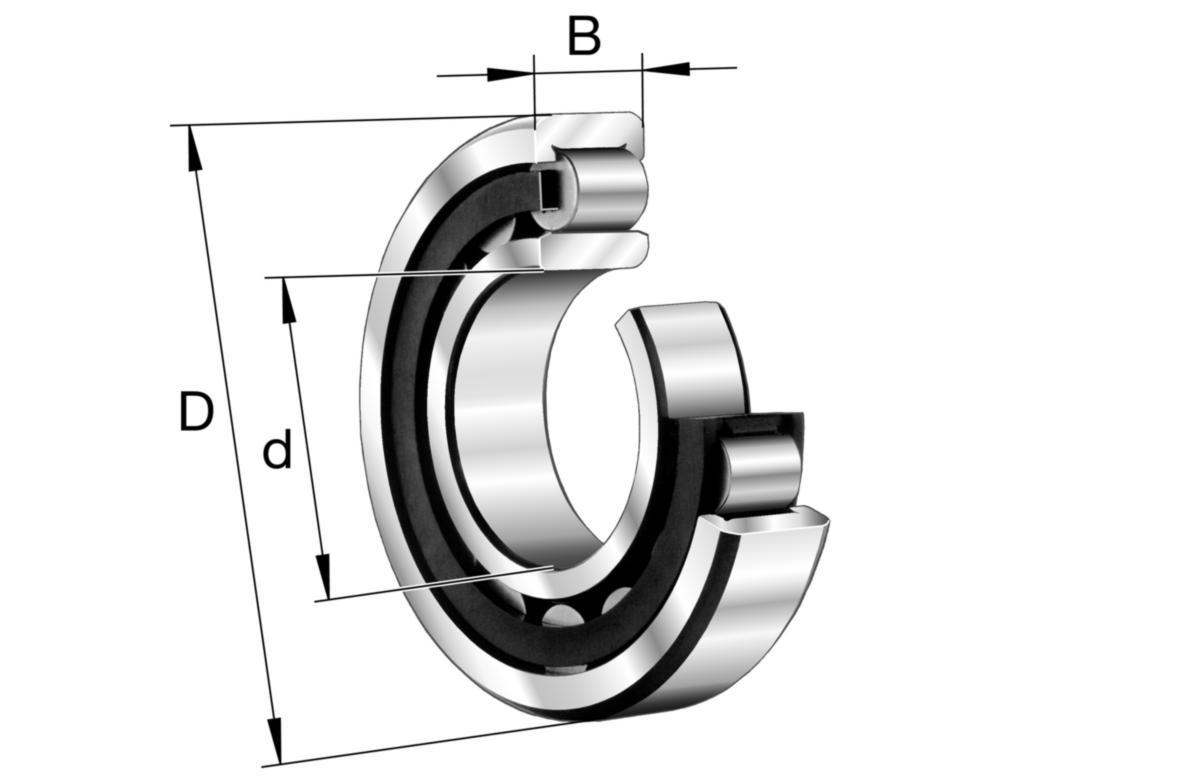 (Kuvan mittaviittaukset; d=sisähalkaisija, D=ulkohalkaisija, B=leveys)
