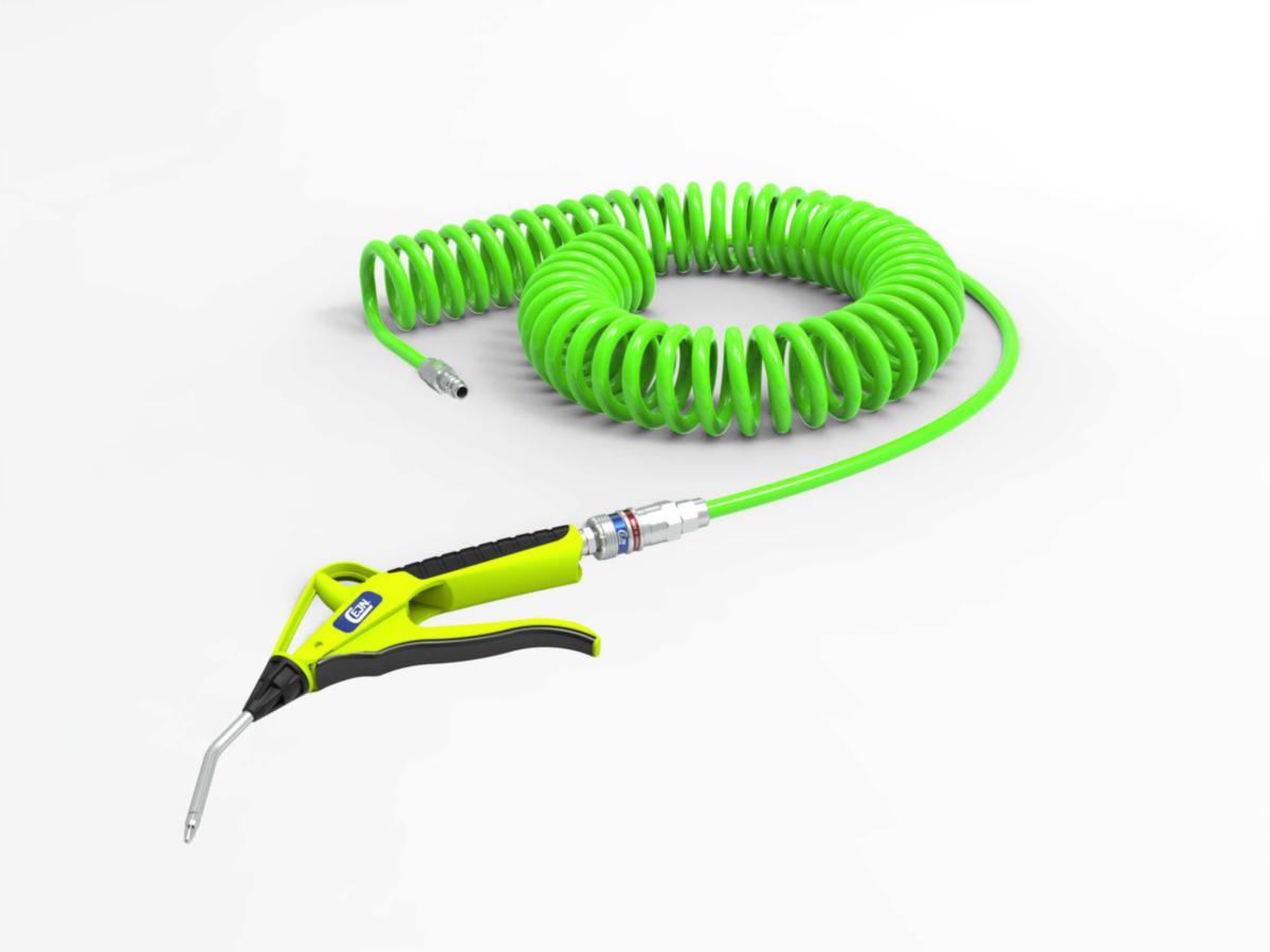 Uusi 209-sarjan puhalluspistooli. Hi-Vis huomioväri. Uudellenmuotoiltulla kahvalla parempi pito. Melua vaimentava Star-Tip -turvapistooli. Letkussa eSafe-turvaliittimet.
