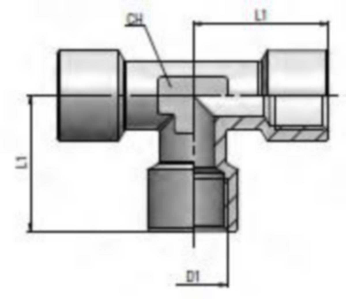 T-Haara 1/4" BSP sisäkiertein pneumatiikkaan, kemikaaleille, vedelle, elintarviketeollisuuteen jne. Materiaali AISI 316L. Max työpaine 150 bar.