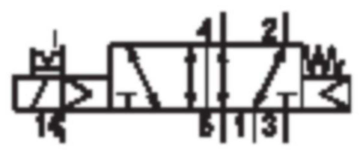 - Venttiilitoiminto: 5/2 yksi solenoidi, jousipalautus